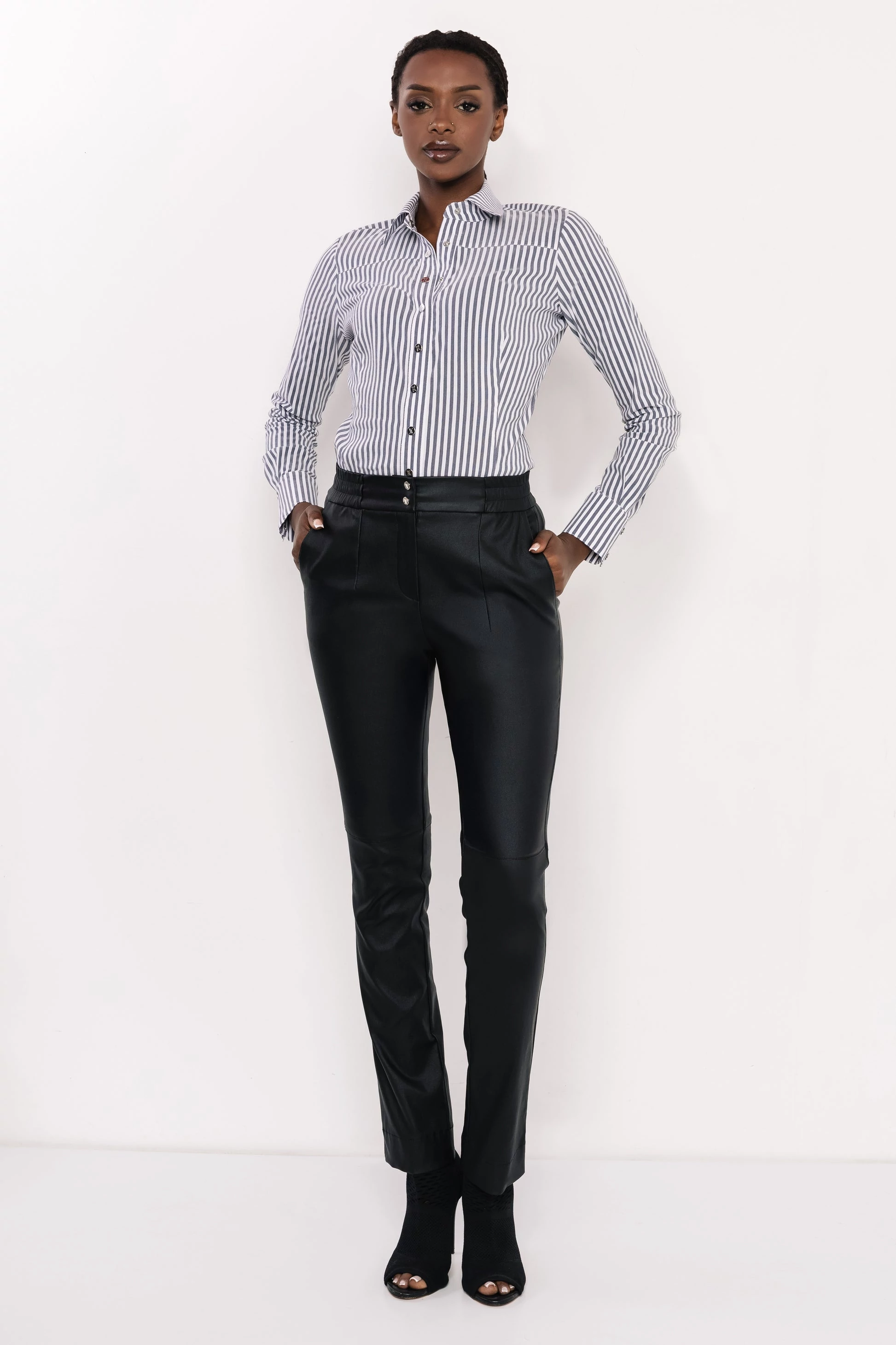 Termékleírás: Az AMNESIA Tibol nadrág a letisztult, modern vonalvezetés és a komfort tökéletes harmóniáját kínálja. A kent bengalin anyag rugalmas szerkezete biztosítja, hogy a nadrág kényelmesen idomuljon a testhez, miközben megőrzi elegáns tartását. A magasított derék és a karcsúsított szár nőies és nyújtott sziluettet eredményez, amely időtállóan stílusos hatást kelt. S, M és L méretben elérhető, így könnyen megtalálhatod a hozzád illőt. Két színben kapható: klasszikus fekete és trendi rózsabarna, melyek sokoldalúan kombinálhatóak a szezon darabjaival. A precízen kialakított szabásvonalak és a sima felületű anyag elegáns és kifinomult megjelenést biztosítanak, akár hétköznapokra, akár alkalmakra viseled. Viseld az AMNESIA Eskelina bodyval a klasszikus irodai stílusért, kombináld csinos blúzokkal nőiesebb megjelenéshez, vagy párosítsd lezser felsőkkel a hétköznapi elegancia kedvéért.