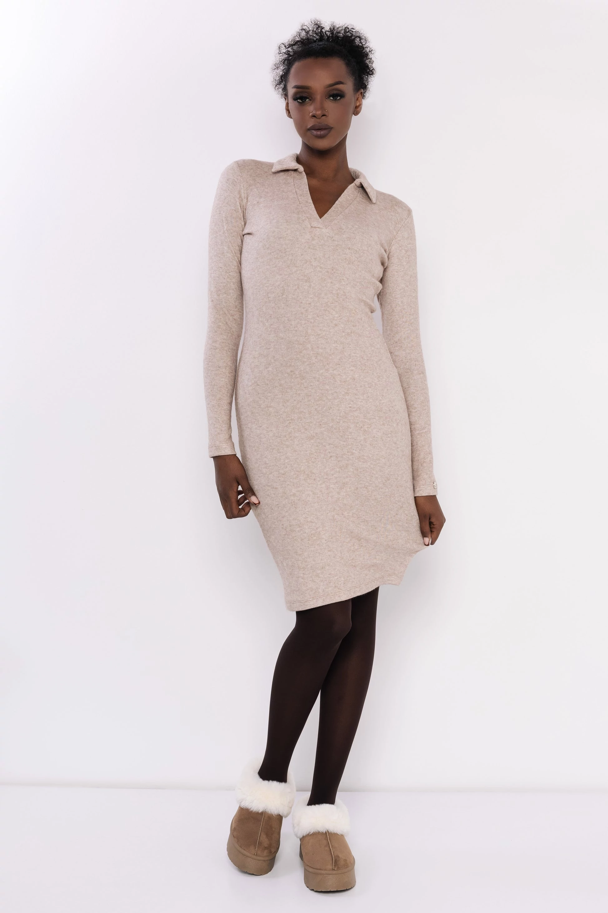 Termékleírás: Az AMNESIA Visual ruha a letisztult elegancia és a kényelmes nőiesség tökéletes kombinációja. A finom, vékony kötött anyag lágyan simul a test vonalaira, miközben a galléros, V-kivágású nyakrész klasszikus és modern hatást kelt egyszerre. A hosszú ujjú, enyhén karcsúsított fazon optikailag nyújtja az alakot, így minden testalkaton előnyösen mutat. Viseld csizmával és övvel a mindennapokra, vagy kombináld sportcipővel és kabáttal egy lazább, városi összeállításhoz – a bézs árnyalat sokoldalúságának köszönhetően bármilyen stílusba könnyen beilleszthető.