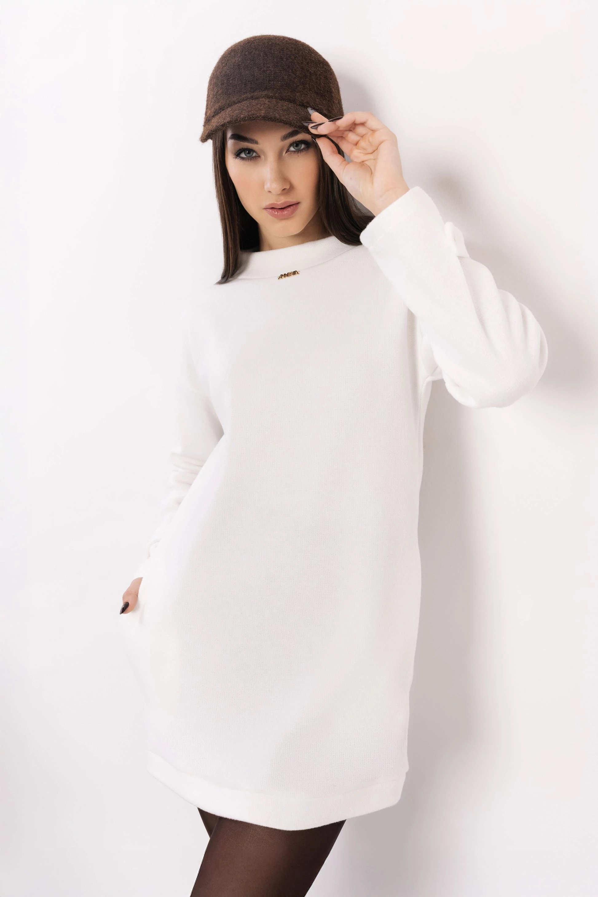 Termékleírás: Az AMNESIA Vixi tunika a sportos stílus és a kényelmes öltözék tökéletes ötvözete. A vastag kötött anyag kellemes meleget biztosít, az enyhén álló nyakkivágás és az ejtett vállvonal pedig lezser eleganciát kölcsönöz. A mandzsettás ujjakon található díszgomb részlet finoman emeli ki a darab igényes kidolgozását. Tökéletes választás leggingsszel vagy bőrhatású nadrággal, de akár egy övvel derekat hangsúlyozva is viselhető. A fangó, ekrü és fekete színek közül bármelyik stílusosan beilleszthető az őszi-téli gardróbba.