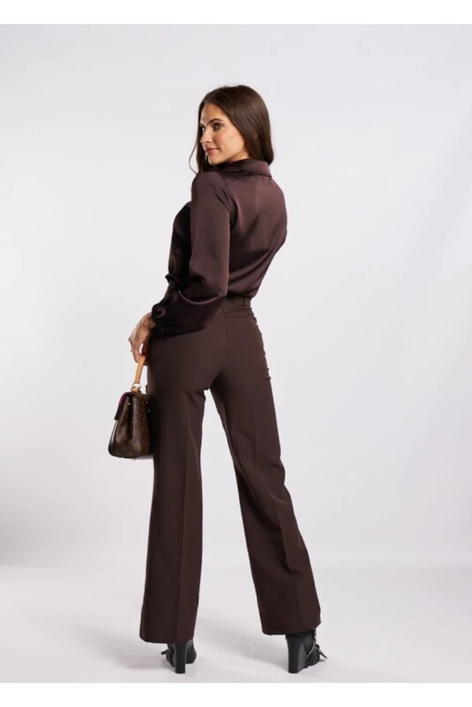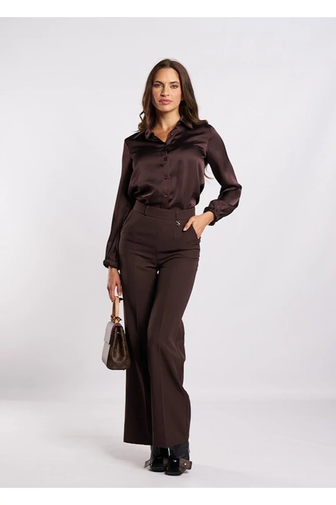 Termékleírás: Élhajtott, trapéznadrág svédzsebbel, hátul cipzárral.