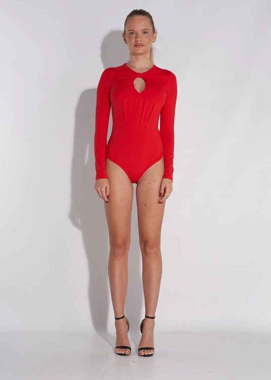 Termékleírás: Hosszú ujjú, mellkasán bő, nyakán nyitott body.