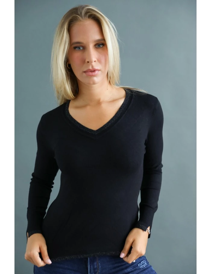 Termékleírás: Elasztikus anyagból készült, vékony kötött pulóver.